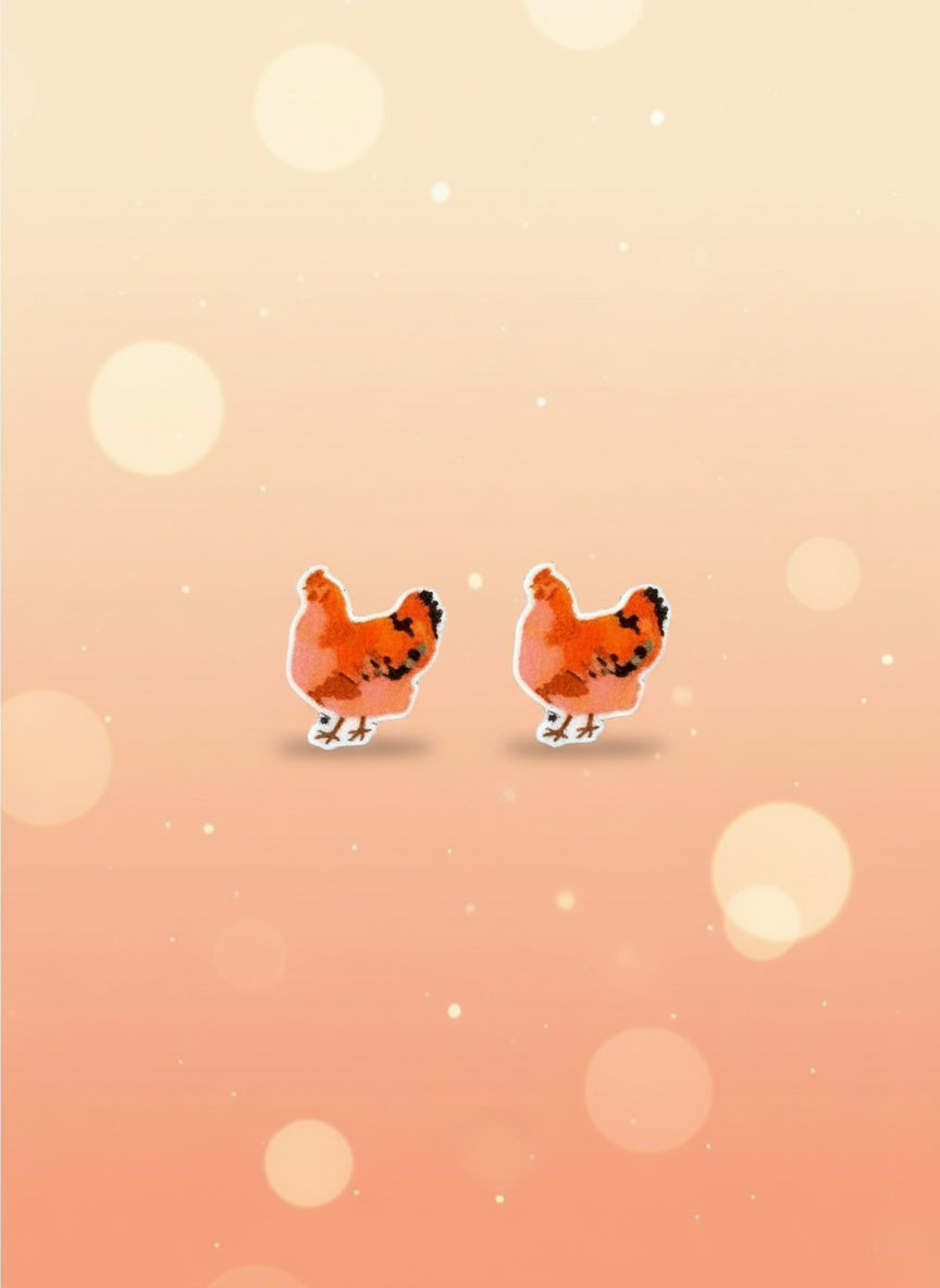 Chicken Stud Earrings – Colorful Farmhouse Style Chicken Lover Jewelry